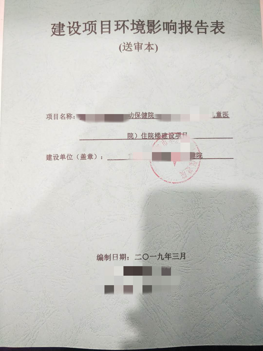 送審某醫(yī)院住院樓建設項目環(huán)評報告表