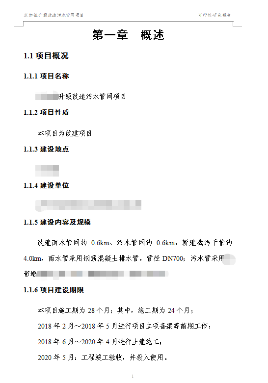 某鄉(xiāng)鎮(zhèn)升級改造污水管網(wǎng)項目可行性研究報告